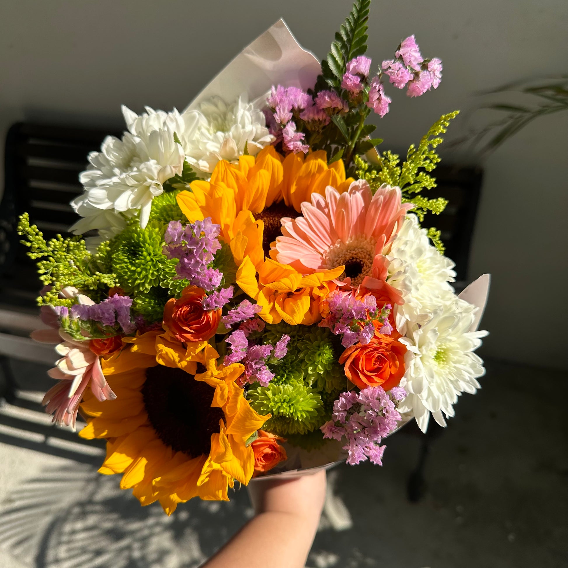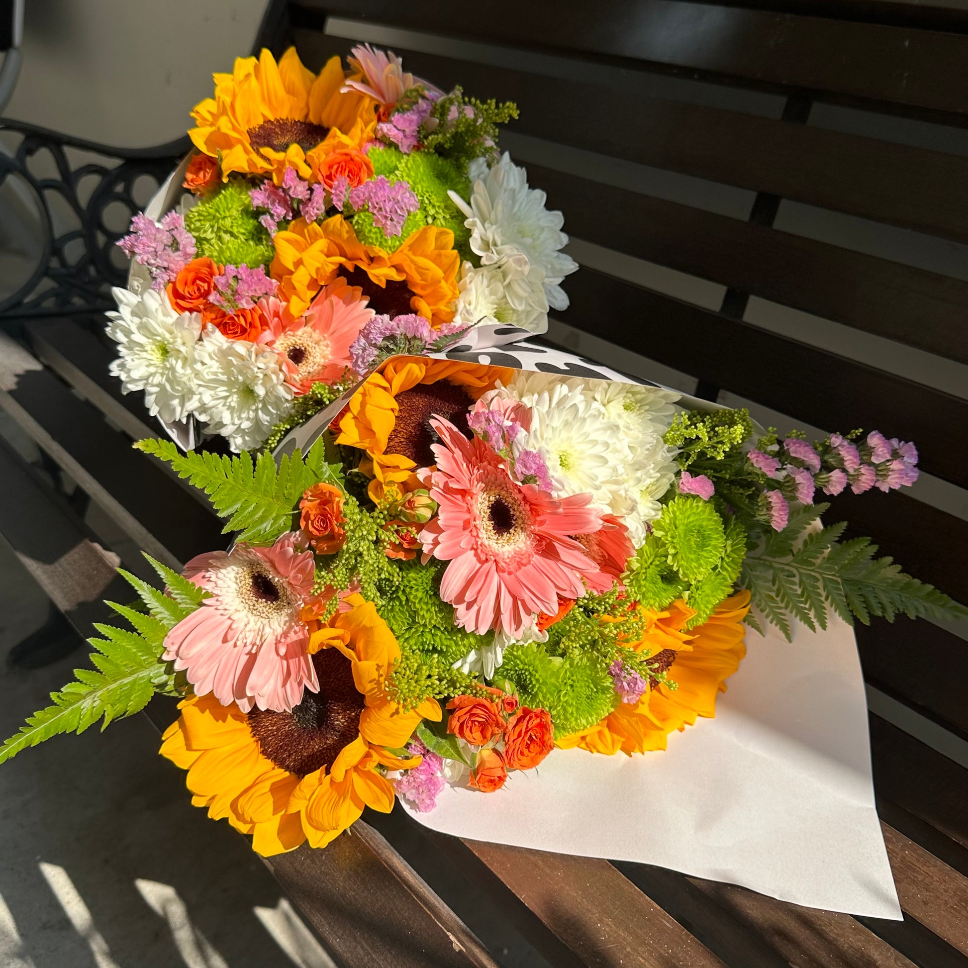 KB ISSUE #12 will run from 24th to 31st July 2024! This charming arrangement is our biggest yet, and comes with Sunflowers, daisies, rosesprays, and more.