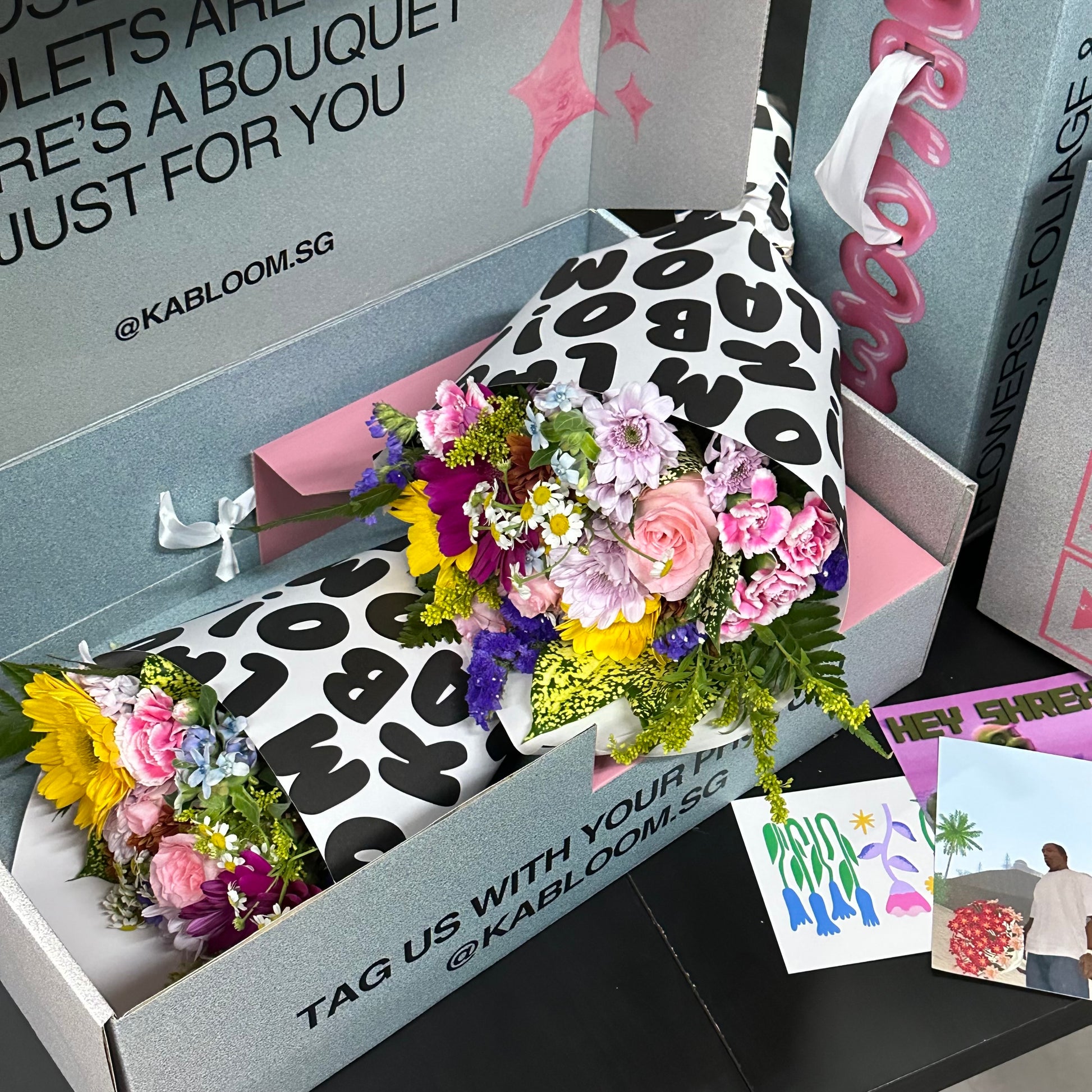 All bouquets will be delivered in our Kabloom boxes, to you or your recipient's doorstep. Each bouquet will also come with a complimentary gift card, please remember to leave your note and delivery date (!!!!) before you check out!Â