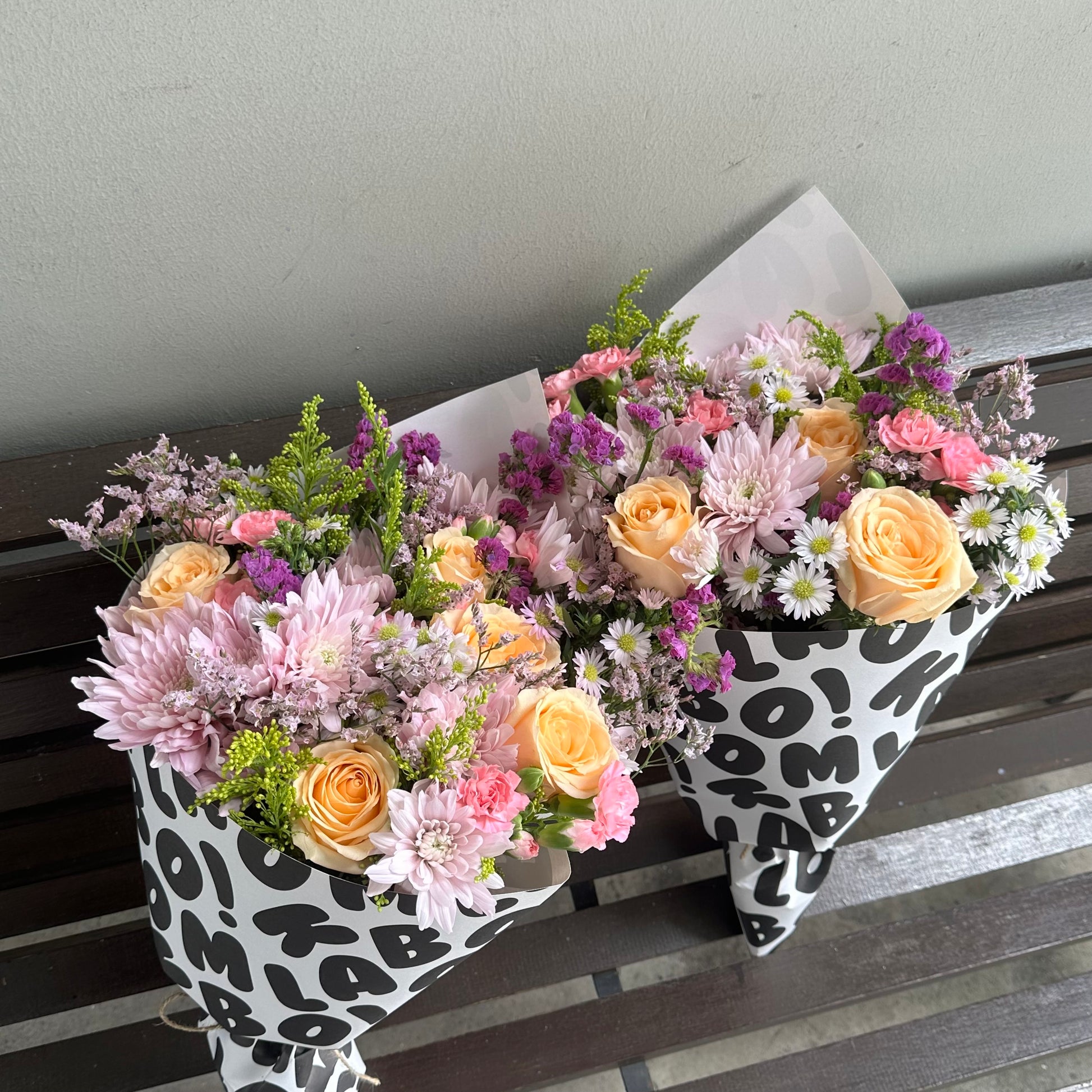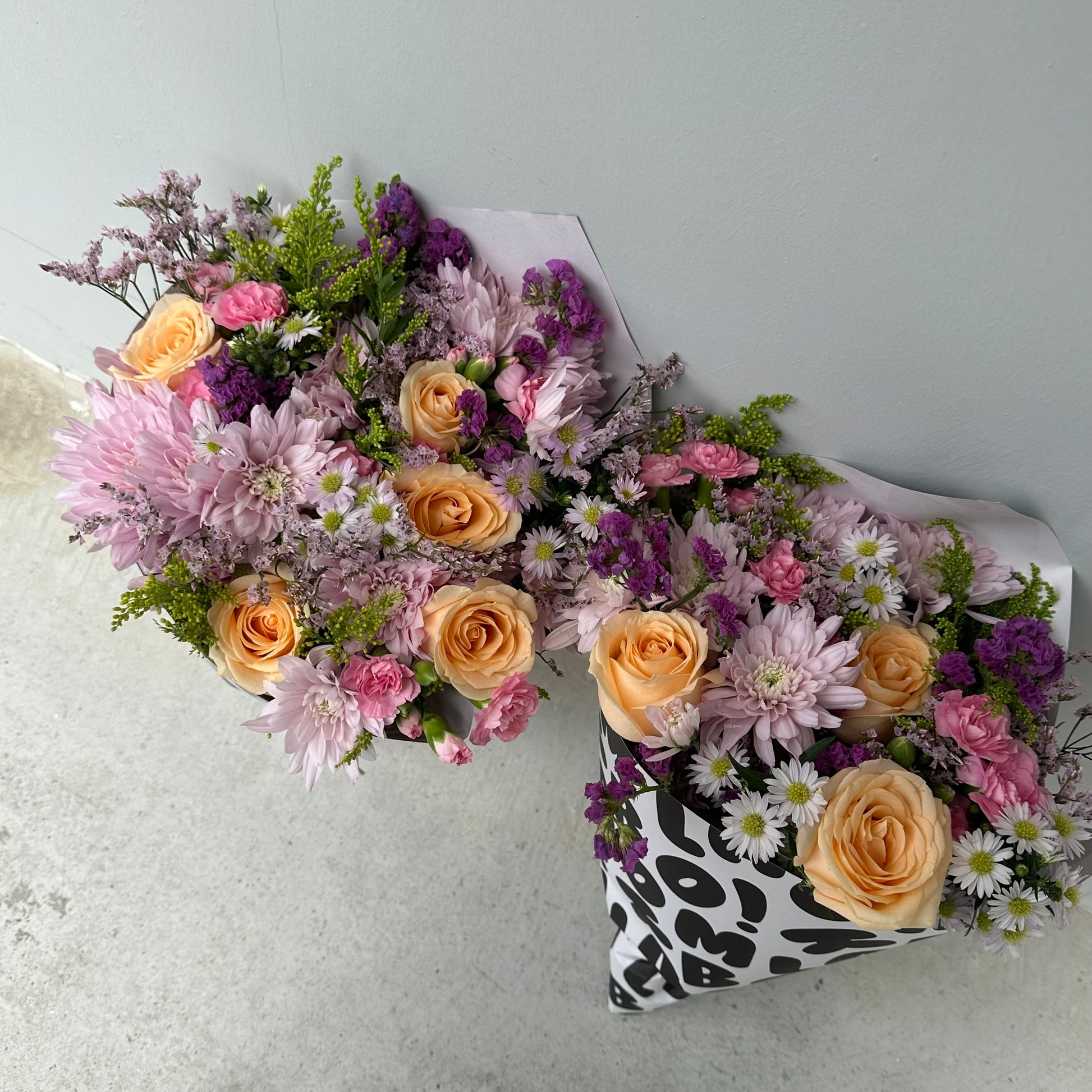 All bouquets will be delivered without a box (we're awaiting our next shipment T.T), to you or your recipient's doorstep. Each bouquet will also come with a complimentary gift card, please remember to leave your note and delivery date (!!!!) before you check out!
