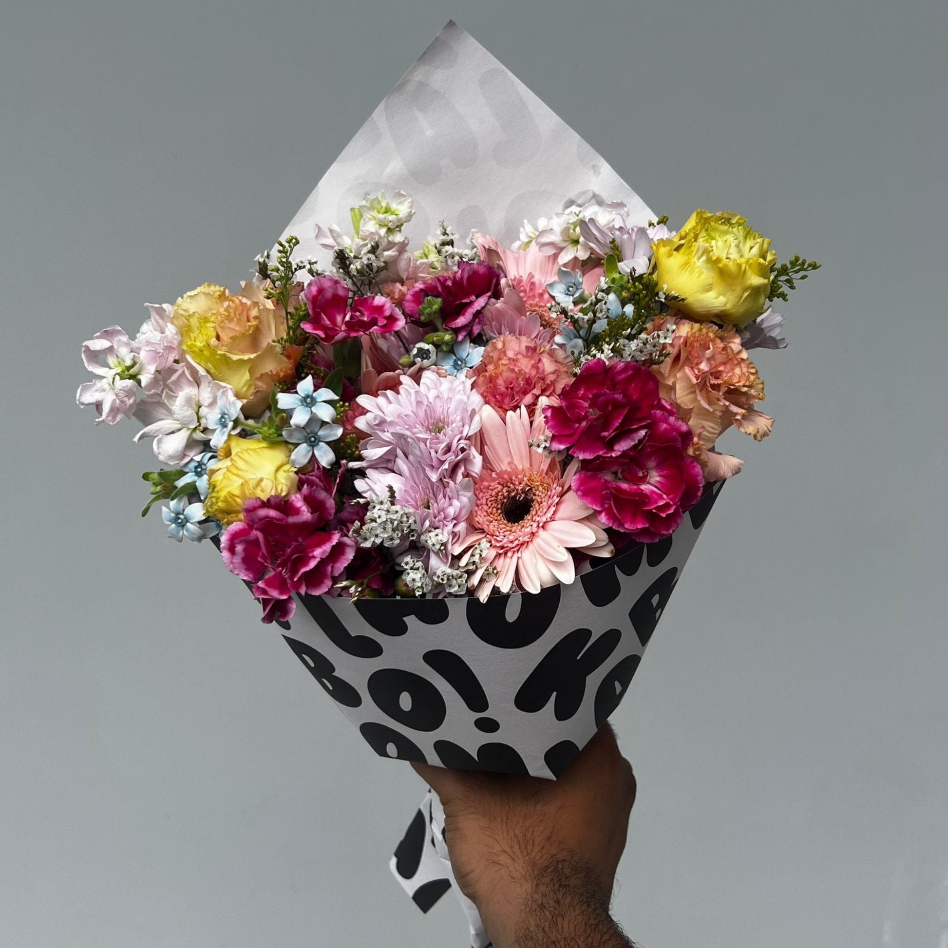 KB Issue #57 is our answer to Valentine’s Day for those who love colour, texture, and something a little less predictable. Designed especially for recipients who aren’t big fans of classic roses, this arrangement leans into soft champagne tones, gentle pastels, and playful floral movement—romantic, but not cliché.