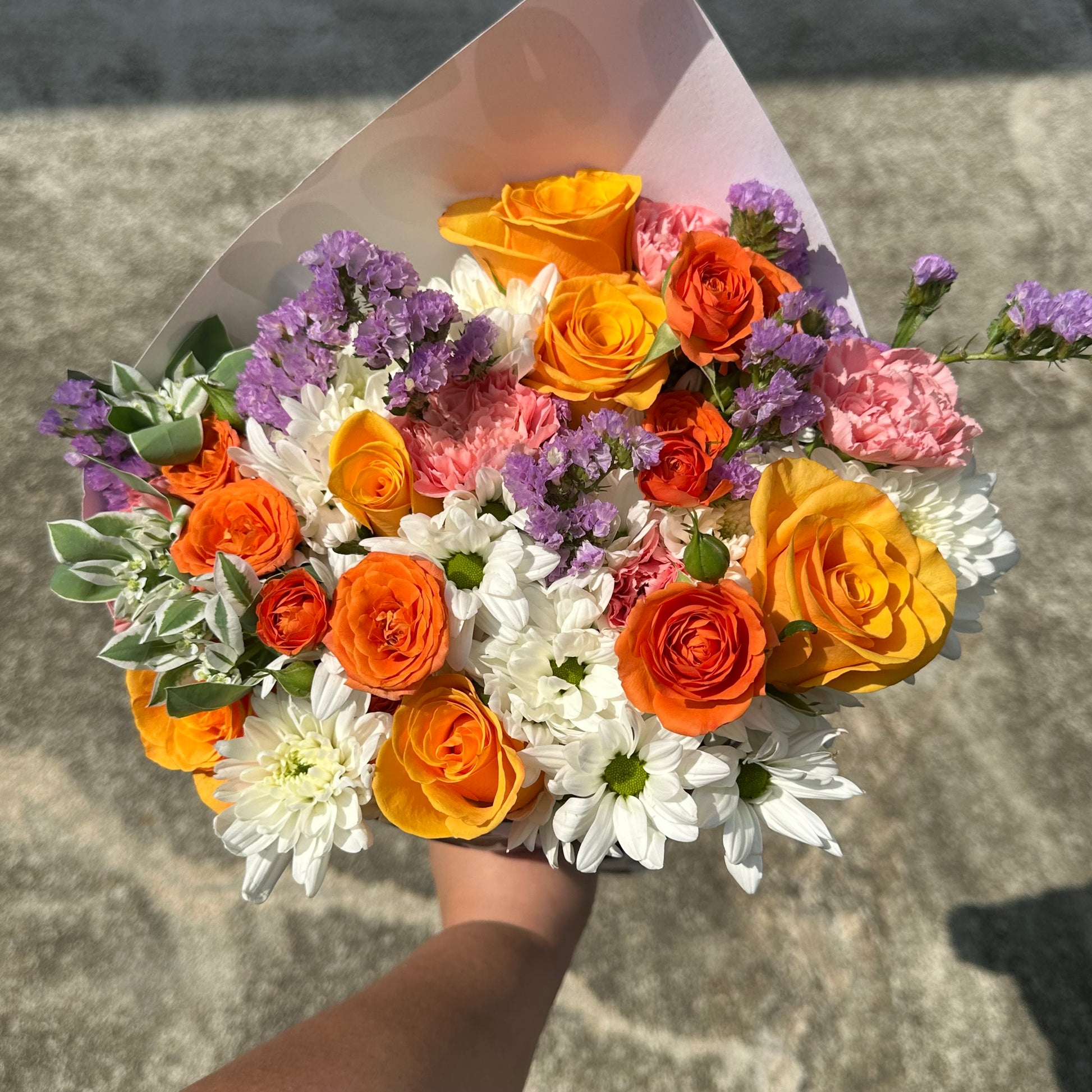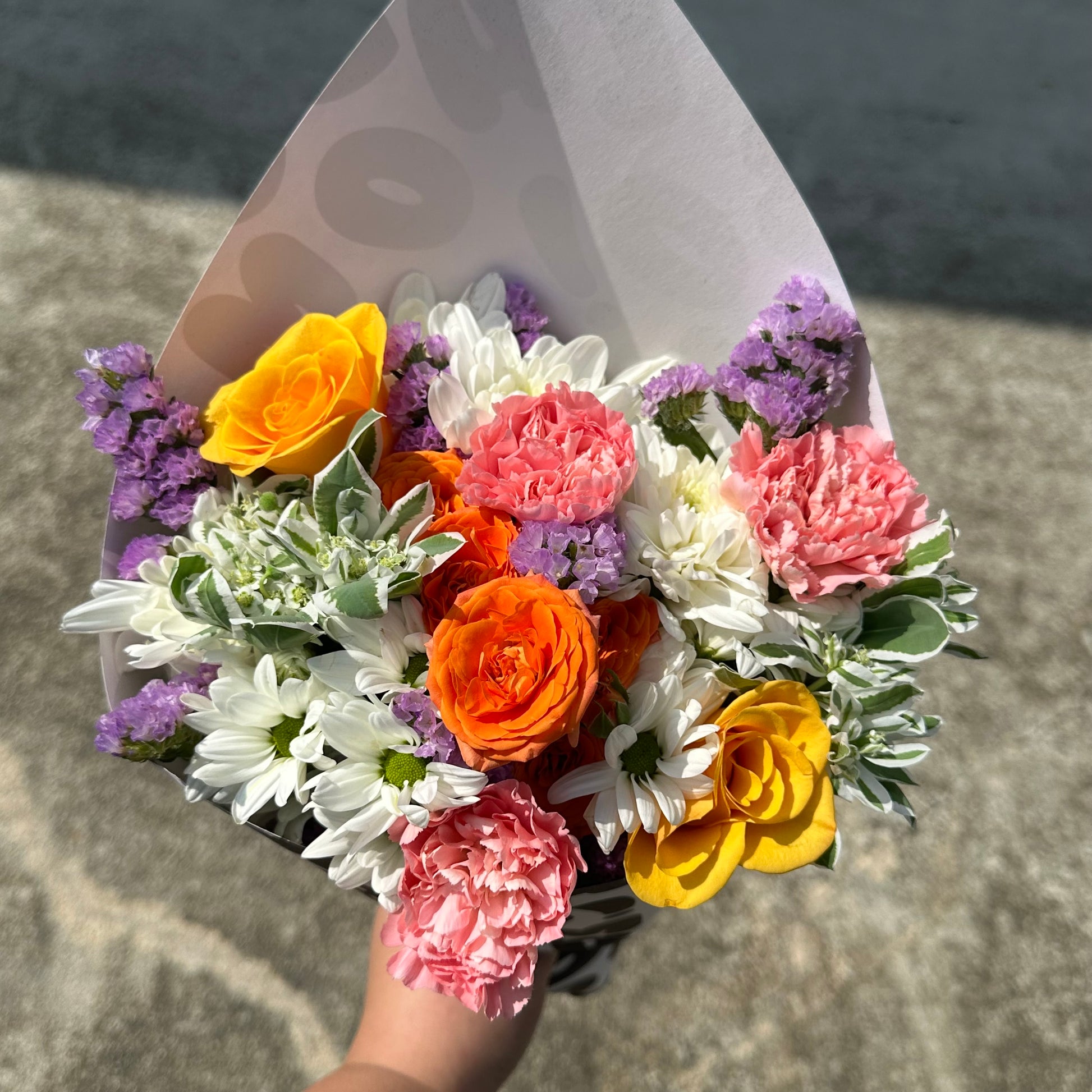 KB ISSUE #7 will run from 20th to 26th June 2024! This bouquet is light and bright, consisting of Roses, Carnations, Rose Sprays, Chrysanthemums, Euphorbias, and more!